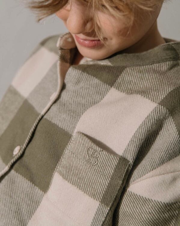 オーガニックコットンフランネルを使用した長袖シャツ。