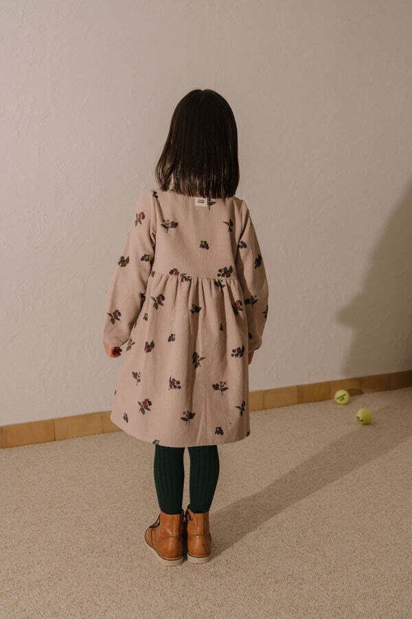 やわらかなオーガニックコットンコーデュロイ素材を使用した着心地の良い長袖ドレス。