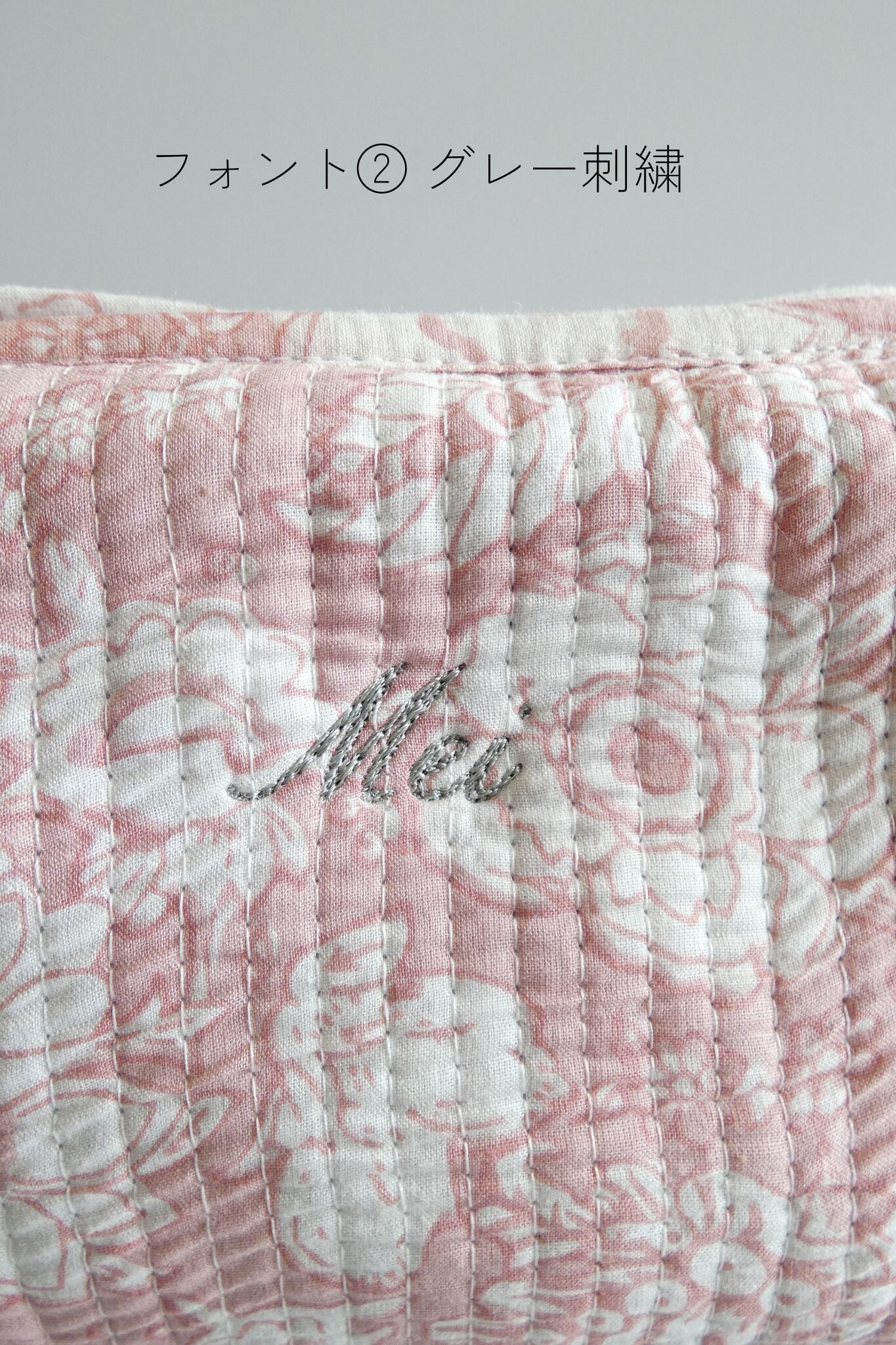 【名入れ刺繍可】Lサイズブロックプリントポーチ/ライトピンク