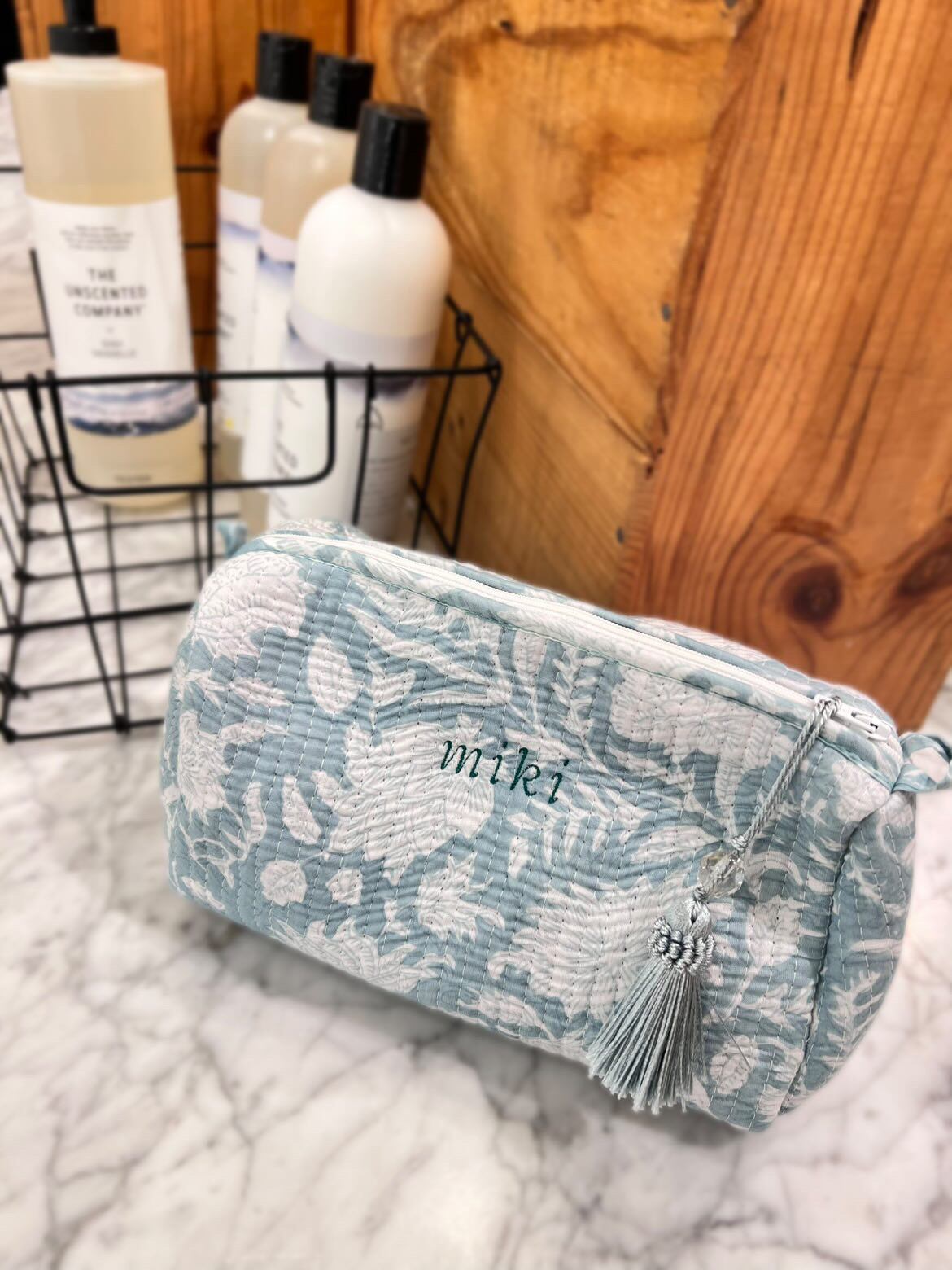 インドの工房で職人がひとつひとつ木版を押して仕上げるブロックプリントのポーチ。