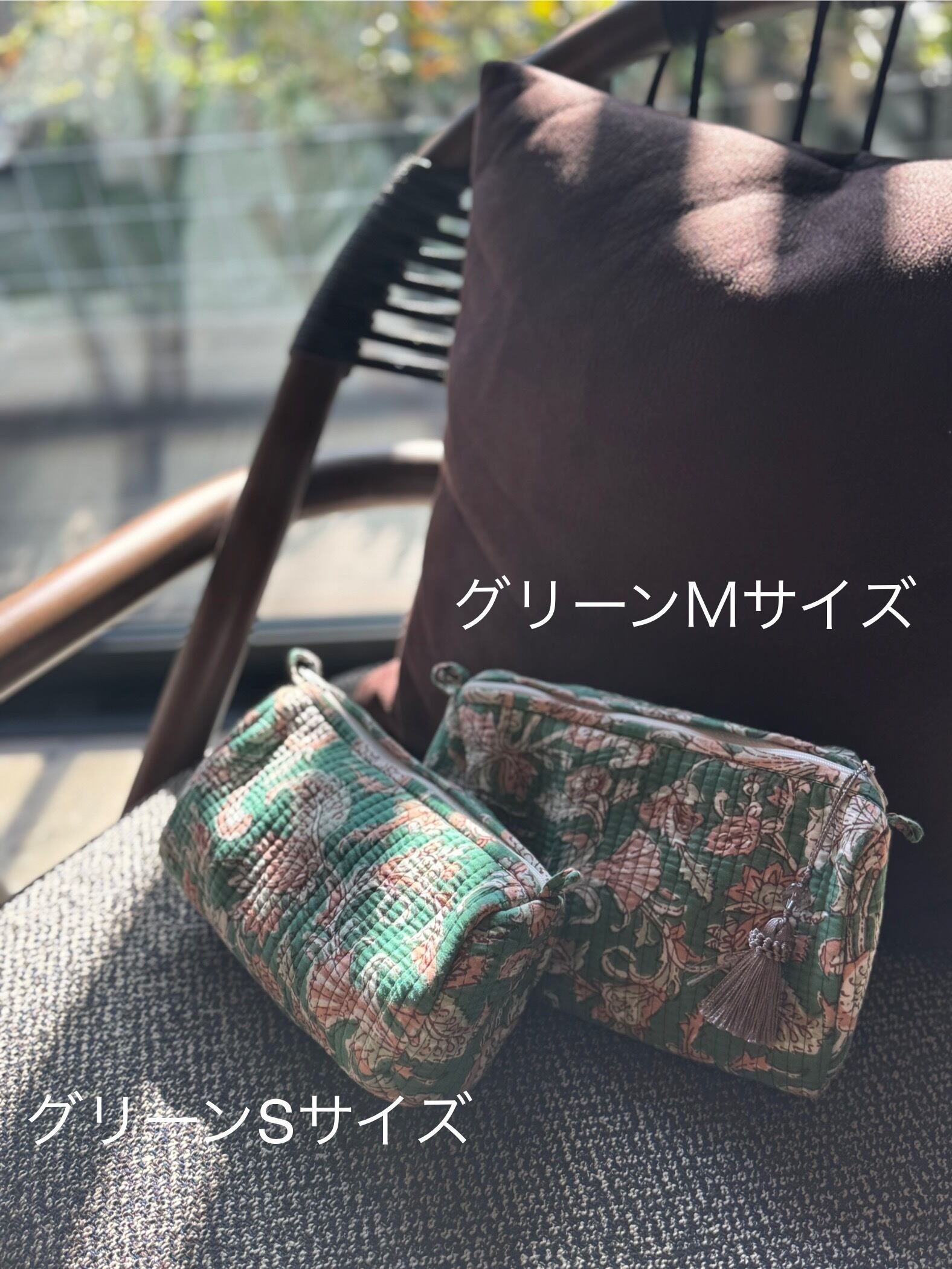 インドの工房で職人がひとつひとつ木版を押して仕上げるブロックプリントのポーチ。