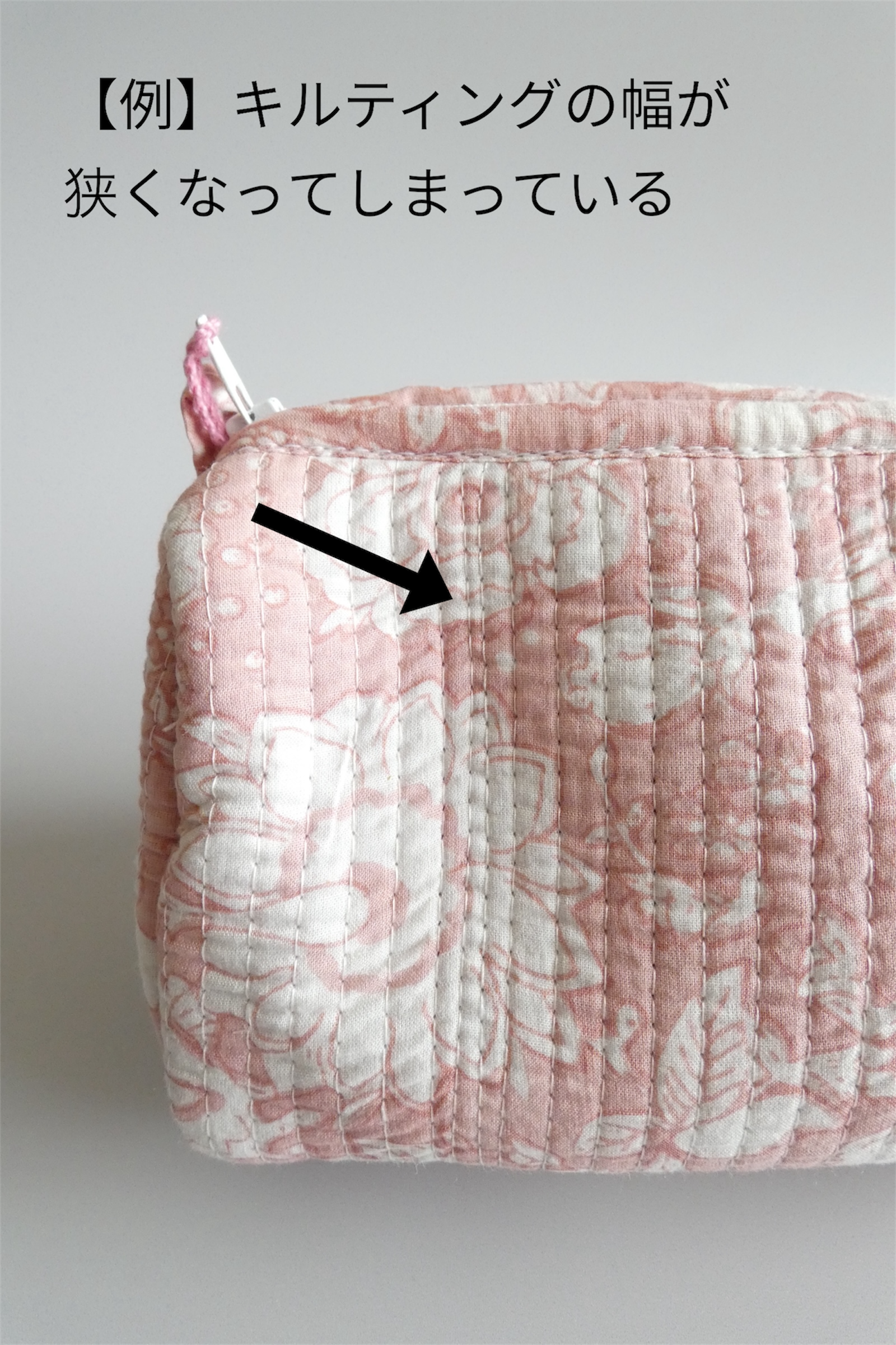 一部キルティングのステッチが少し重なったり幅がずれてしまっています。