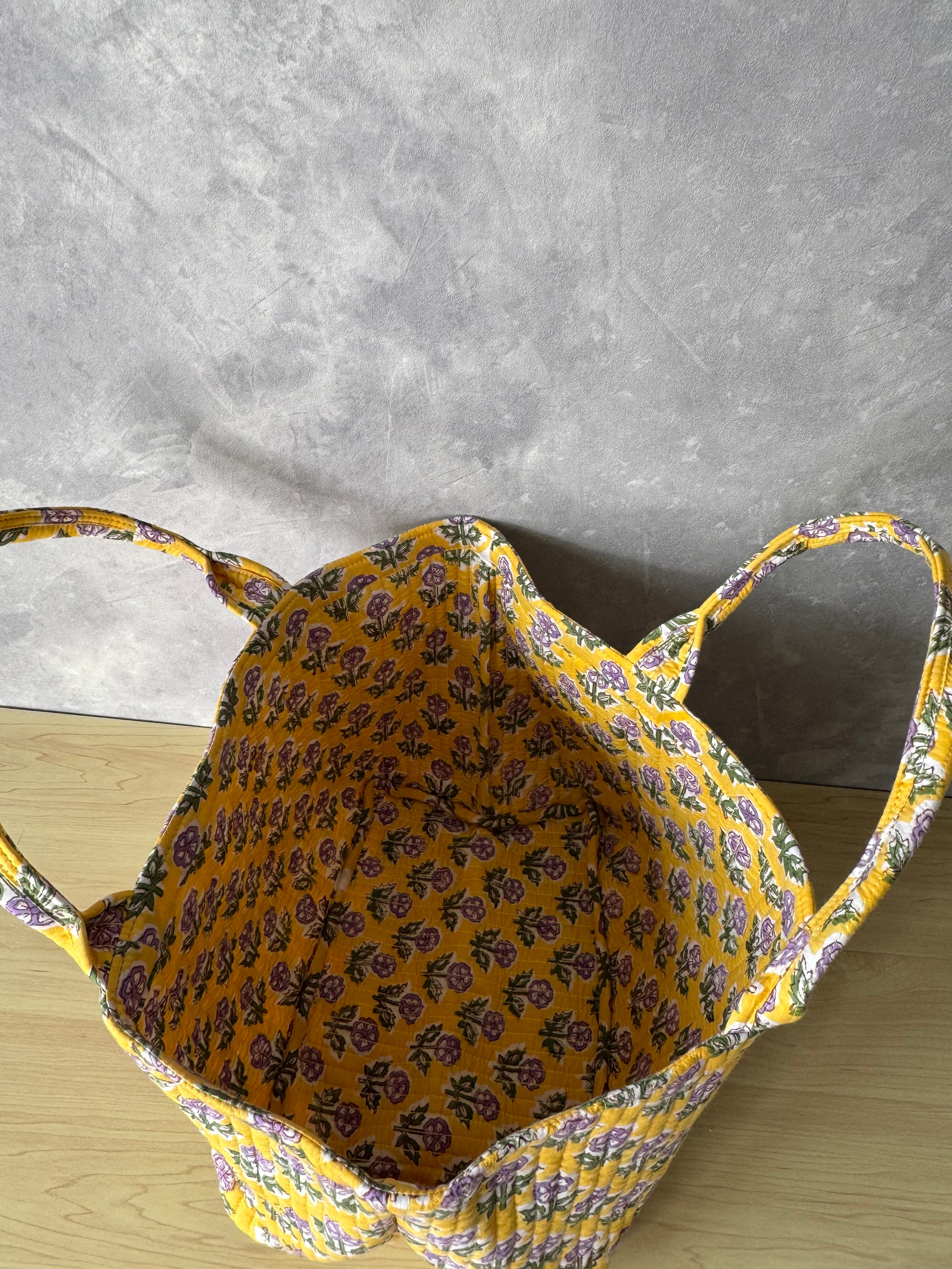 【Mサイズ】ブロックプリントバッグ/イエロー